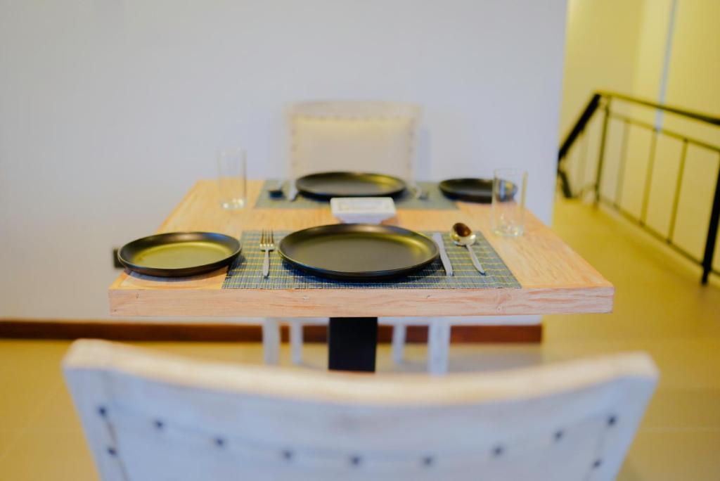 A dining table, mini-bar, and peaceful surroundings